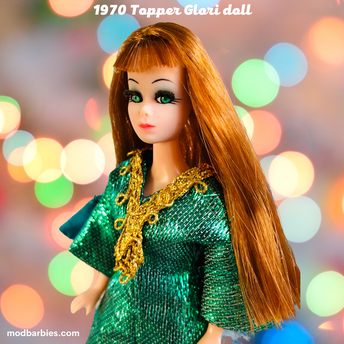 If you enjoyed playing with Mod Barbies as a child, you probably remember the tiny doll stars of the early '70s, Topper's Dawn dolls. Topper Toys released Dawn dolls in March 1970. Compared to Barbie, these dolls were much smaller at 6 1/2" tall. Like Barbies of that era, they had rooted hair and rooted eyelashes. Three friends of Dawn were also released in 1970 - her girl squad Angie, Glori and Dale. Dawn and her besties were glamorous fashion model dolls with the most beautiful fashions. The initial line included 44 groovy outfits.