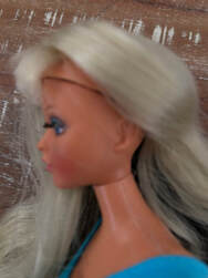 Hair play with dolls was very popular in the 70s. When you look closely at my photo, you'll see a line on the top of her head. That's the part you twist and she flips her hair colors.