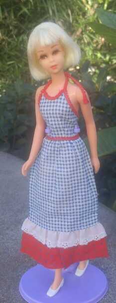 Francie Fairchild was a fashion doll issued by Mattel from 1966 to 1976 and re-introduced in 2011. Marketed as "Barbie's MODern cousin", the doll had an amazing line of "mod"-style clothing. Her fashions highlighted bright colors and geometric patterns similar to fashions associated with London's swinging Carnaby Street in the late 1960s. At 11¼ inches tall, Francie was shorter than Barbie, but taller than Barbie's little sister Skipper, making the character presumably between the two in age.